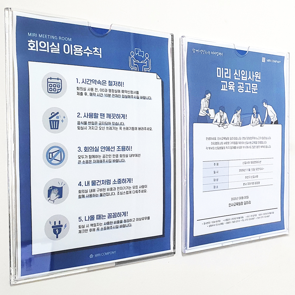일반적인 안내문, 공지사항, 알림판 용도로 사용하신다면 심플하면서 출력물 교체가 쉬운