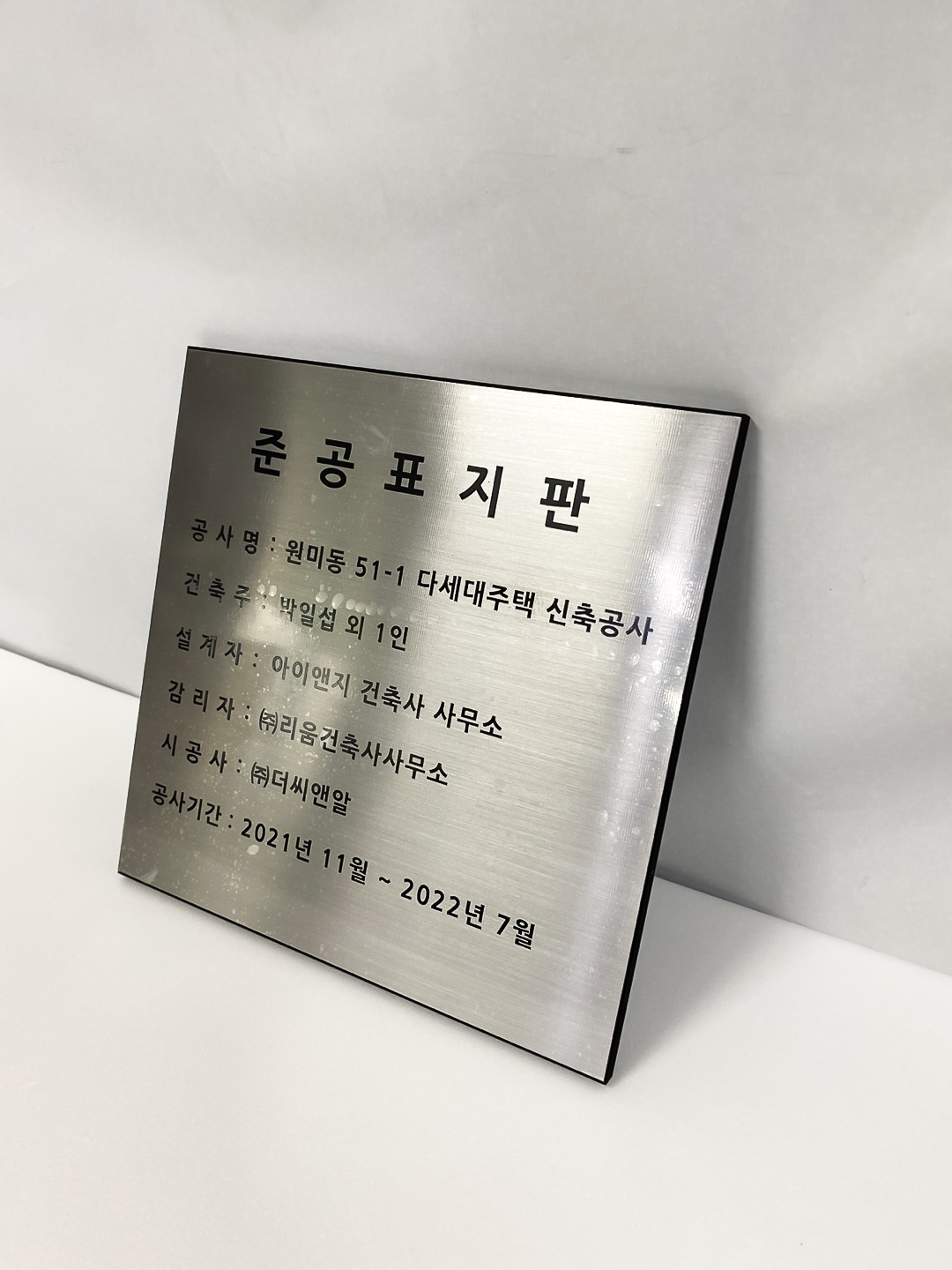 스테인리스는 외부에 설치하는 준공표지판처럼 오래오래 사용하실 때를 추천해 드립니다.
