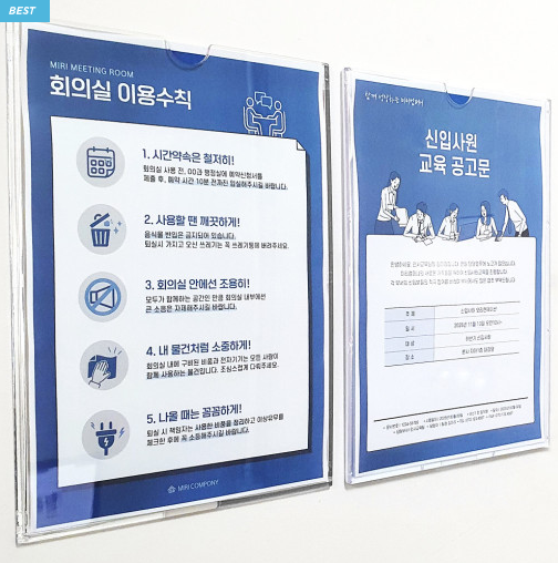 부착용 꽂이 액자가 가장 저렴하고 추천해 볼 만합니다.