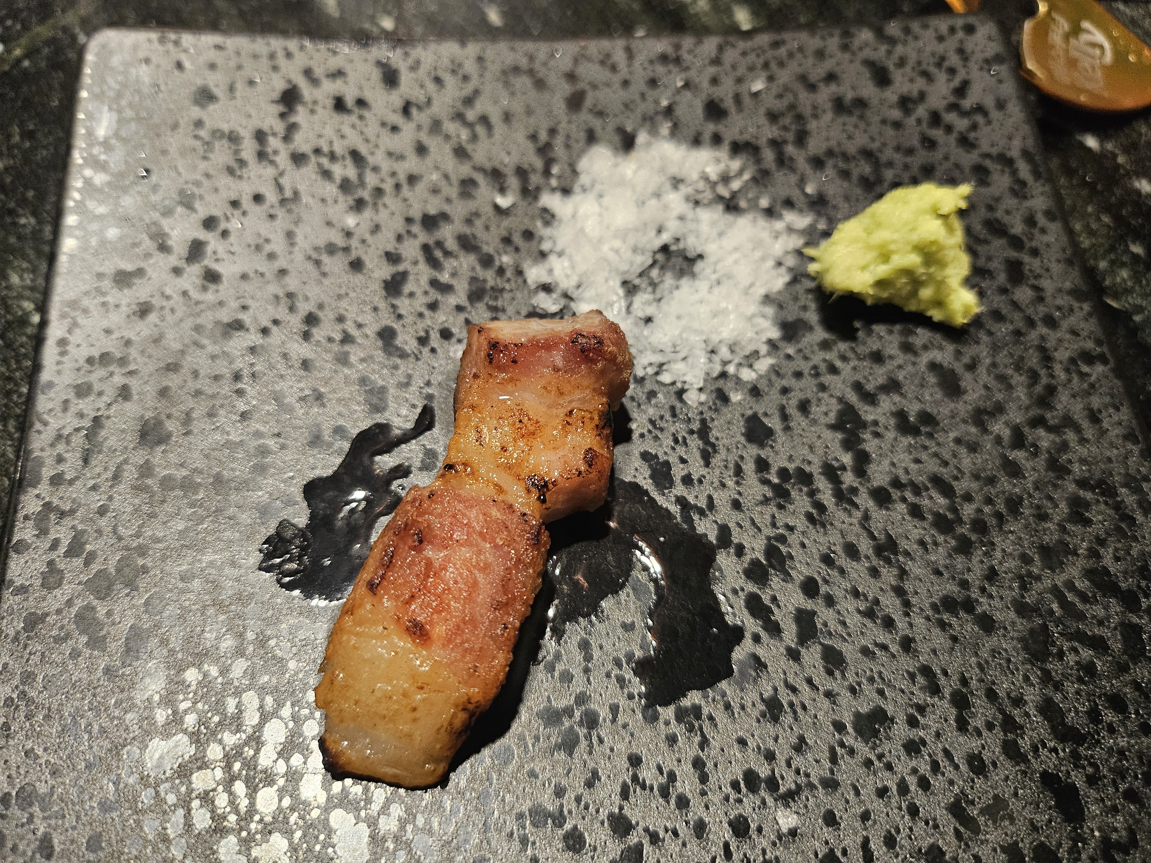 가장 기본적인 맛, 소금과 고기 한 점 먹어보았다.
