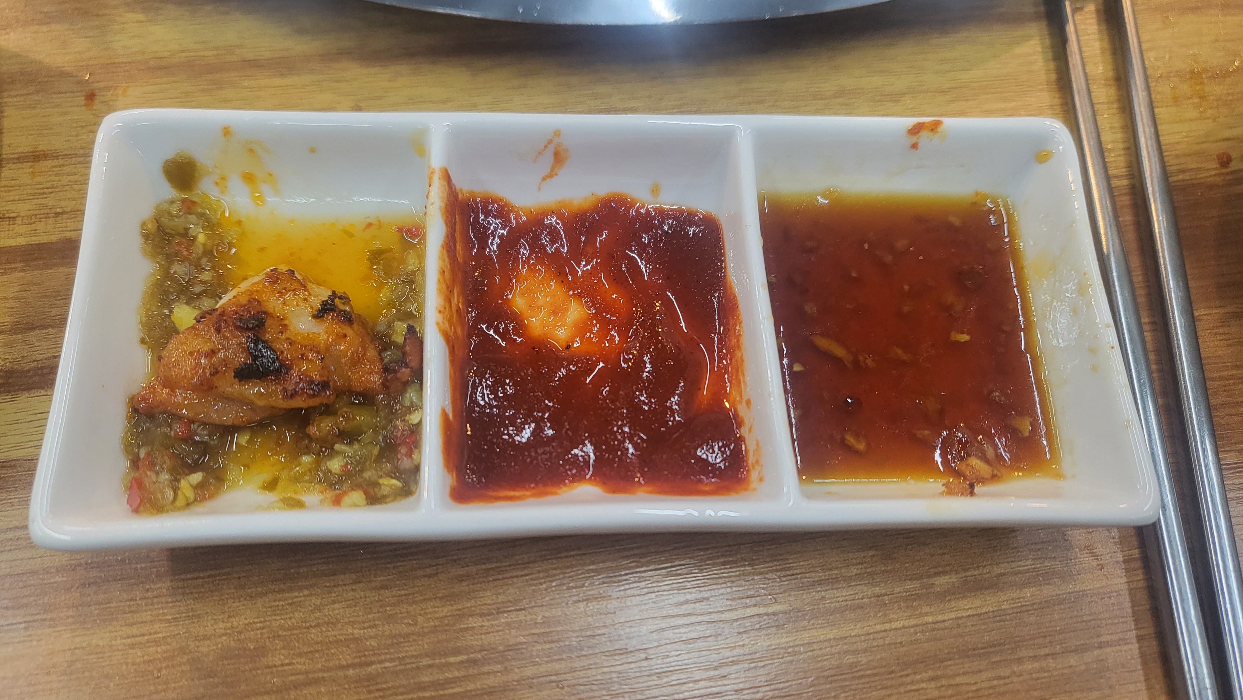 개인적으로 맨 왼쪽 소스가 특히나 맛있었다.