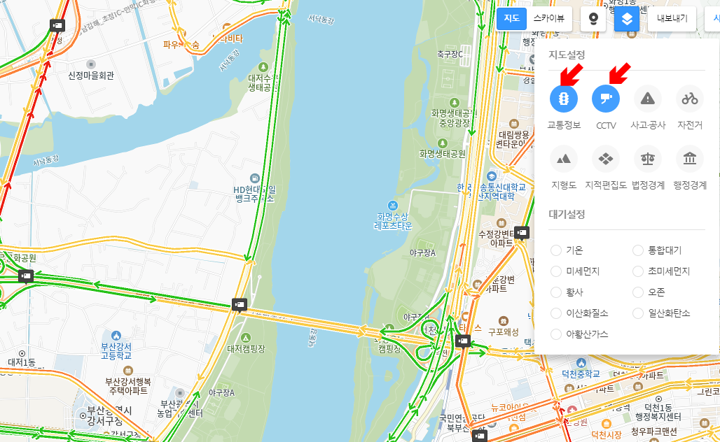 이때 교통정보와 CCTV 모양을 클릭해주세요.