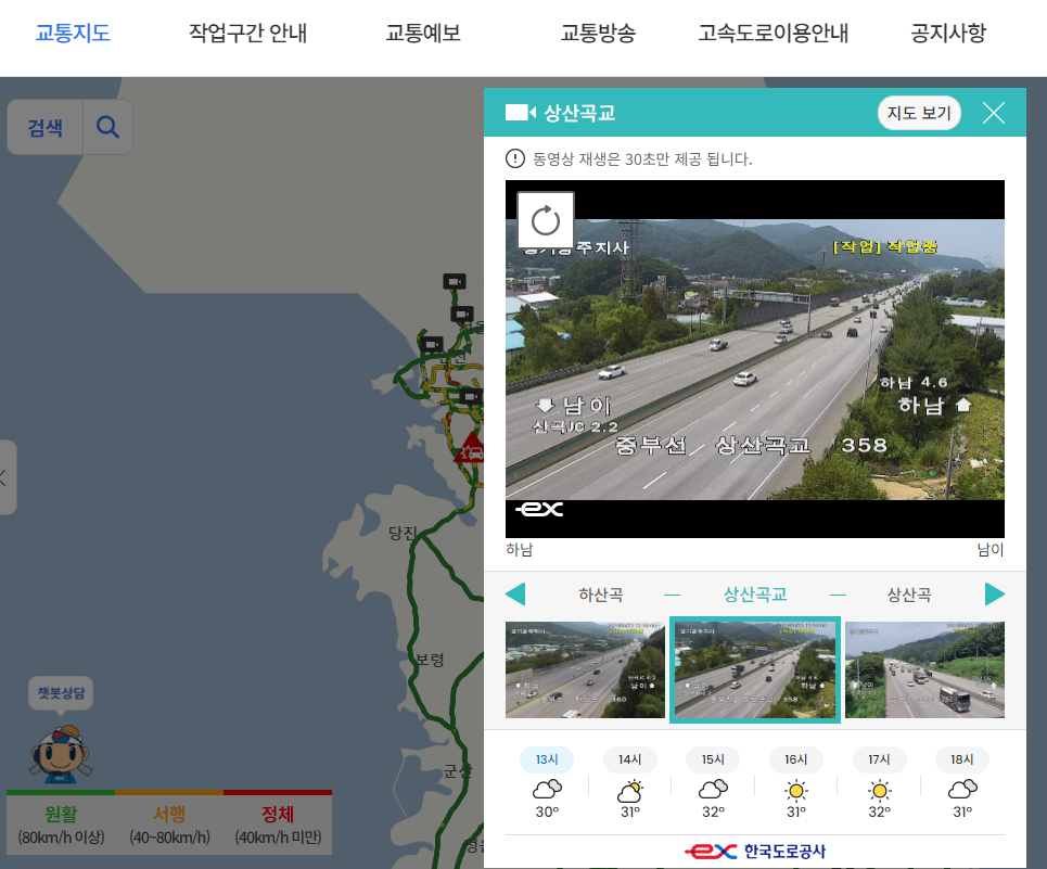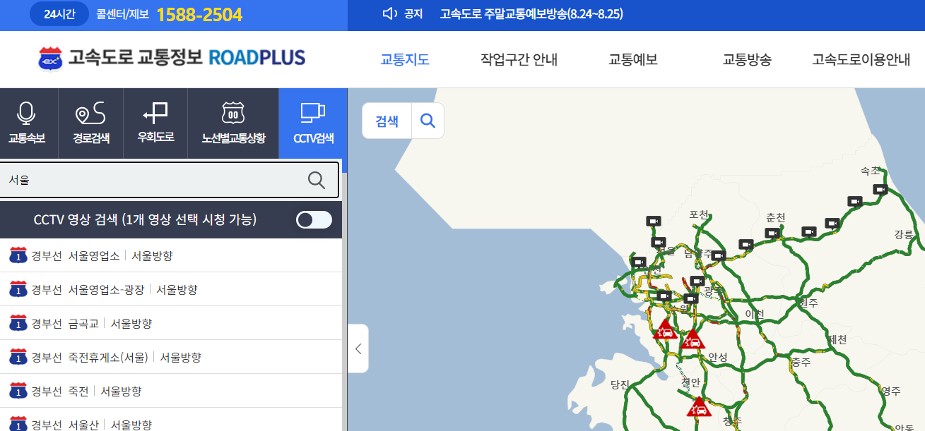 귀성길이 아니더라도 막히는 날짜에 구간을 차로 이동한다면 실시간 CCTV를 볼 수 있는 곳이