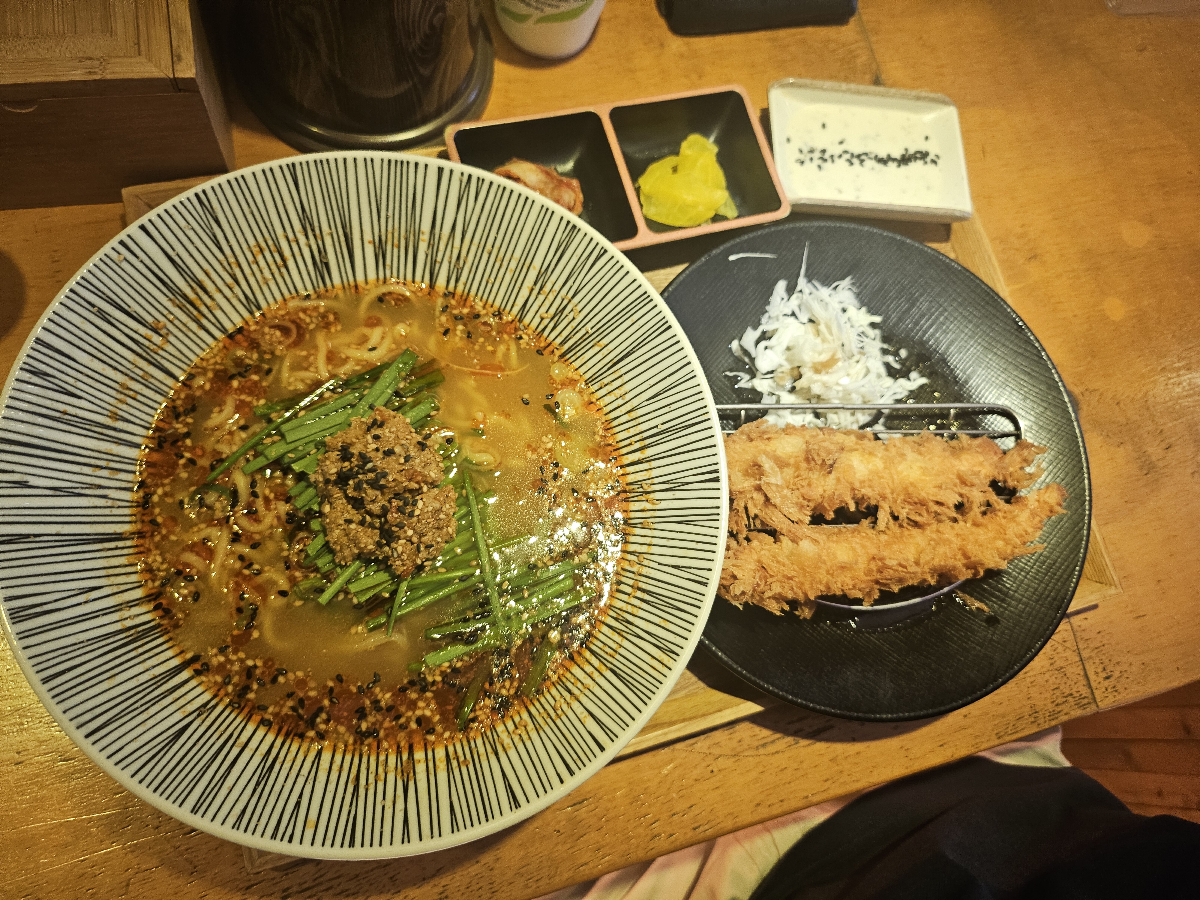 옆에 동료가 시킨 음식은 탄탄멘+왕새우튀김 세트.